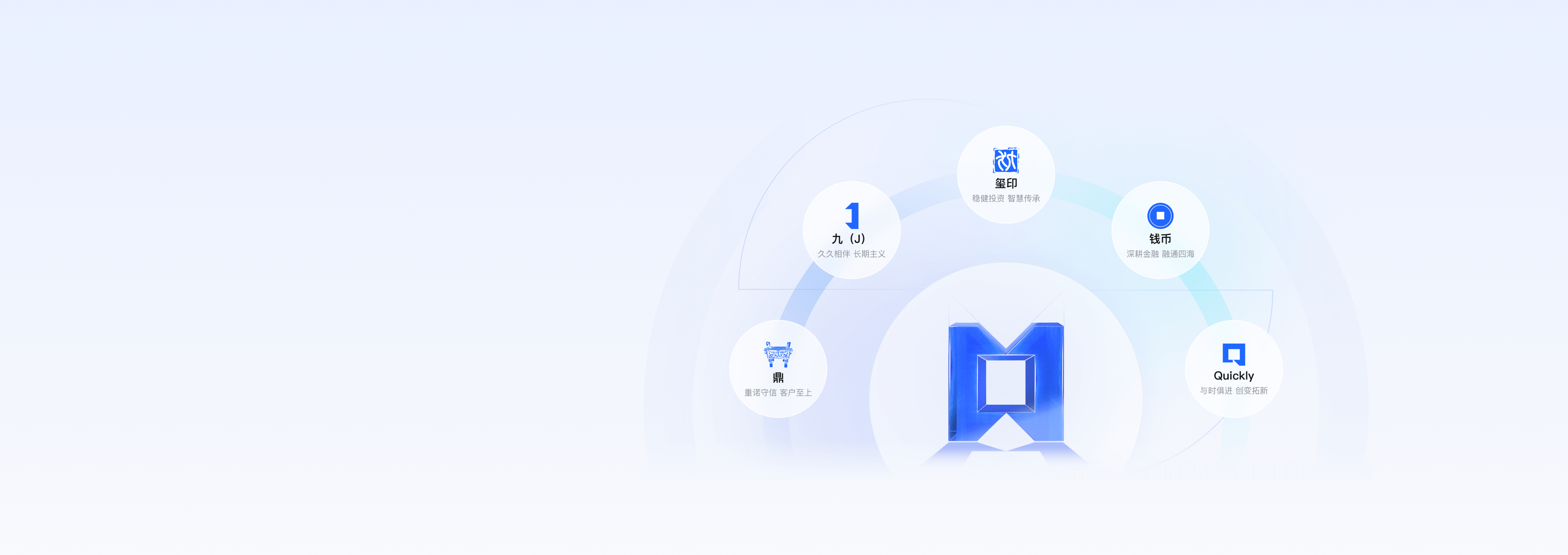 九方智投控股品牌标识从多维度构建独特内涵:整体鼎形凸显以客户为中心、重诺守信;中间 “J” 形传达久久相伴与长期主义;铜钱造型蕴含金融底蕴;玺印轮廓寓意稳健投资与智慧传承;“Q” 形演绎与时俱进、创新求变,整体展现传统金融与现代创新的交融。